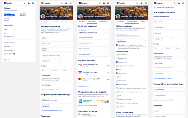 Expedia was transitioning to a new design system, and a "lift and shift" wouldn't cut it for the deeply outdated Member Profile.Leveraging analytics, card sort, tree test, survey, and usability testing data, I redefined the architecture of the member account space.